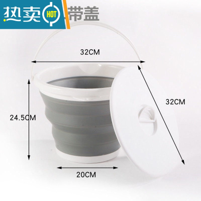 敬平折叠桶打水桶塑料家用洗车便携式小洗澡美术储水旅行车用钓鱼户外 [带盖]灰色大号10L(送6米绳) 送完为止