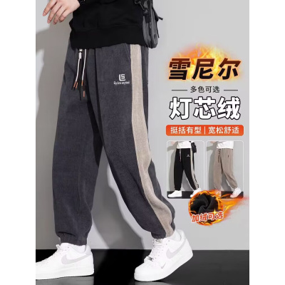灯芯绒休闲卫裤春季裤子男新款宽松大码运动男士秋冬加绒长裤