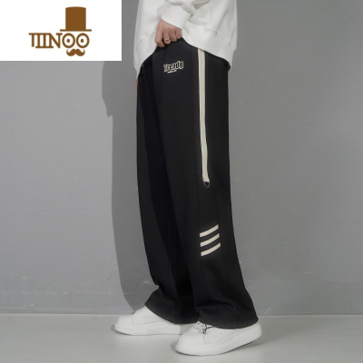YANXU裤子男士2023新款潮牌条纹直筒运动长裤宽松阔腿拖地休闲裤