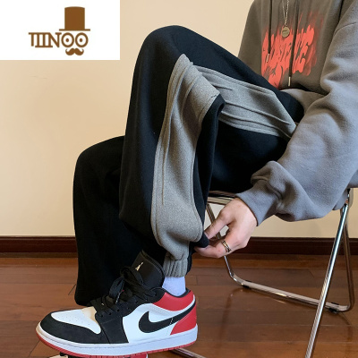 YANXU款休闲裤子男生ins潮流拼接直筒长裤宽松阔腿运动卫裤男士