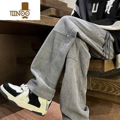 YANXU设计感灰色休闲长裤男士港风男款灯芯绒拖地潮牌运动卫裤子