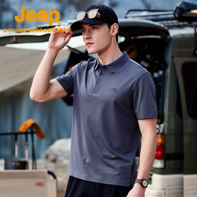 [莫代尔]Jeep吉普速干T恤男无缝袖口翻领POLO衫轻弹透气短袖