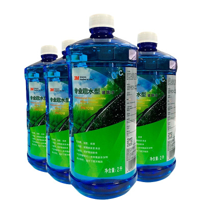 3M PN7018汽车用品专业疏水型玻璃水雨刷水0℃ 2L 4瓶装挡风玻璃清洁液清 除鸟粪虫胶