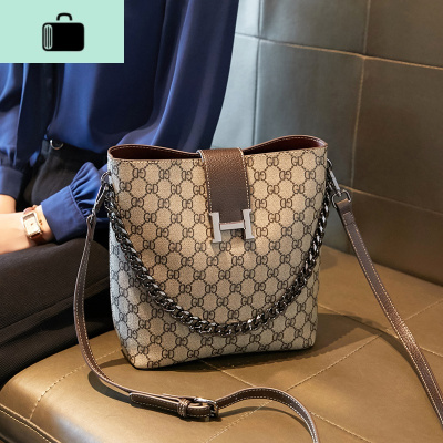 高级感大气女包包2019新款潮时尚菱格链条水桶包百搭宽肩带斜挎包NEW LAKE女斜挎包