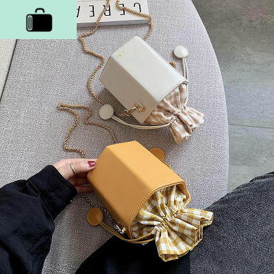 迷你mini小包包2020春新款潮小清新格子抽带水桶包少女链条斜挎包NEW LAKE女斜挎包