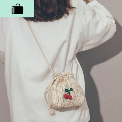 森系手工编织包包2020新款潮小清新可爱仙女水桶包学生手机斜挎包NEW LAKE女斜挎包