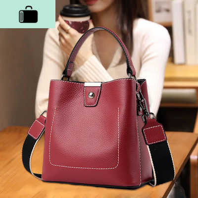 皮水桶包包女新款时尚宽肩带斜挎包休闲百搭单肩手提女包潮NEW LAKE女斜挎包