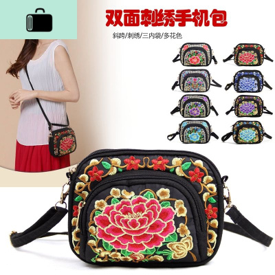 云南民族风刺绣斜跨包女百搭帆布迷你手机包多层绣花斜挎包包NEW LAKE女斜挎包