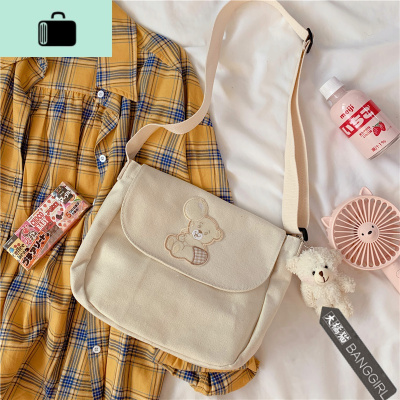韩国INS可爱卡通古着感小熊帆布邮差包日系原宿少女心软妹斜挎包NEW LAKE女斜挎包