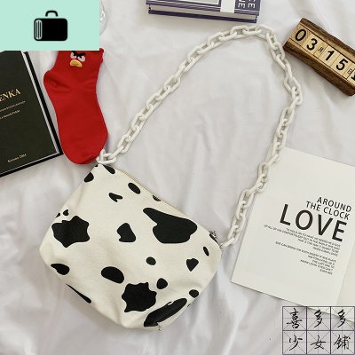 韩国ins小清新牛奶古着感少女斜挎包百搭学生可爱日系帆布奶牛纹NEW LAKE男士斜挎包