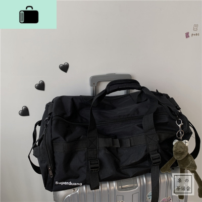 日系原宿ulzzang运动健身包男斜挎包行李桶包ins大容量旅行背包女NEW LAKE女斜挎包