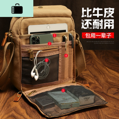 日系复古帆布包男包单肩包潮流休闲商务斜挎包多功能小背包NEW LAKE男士斜挎包