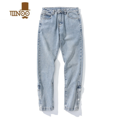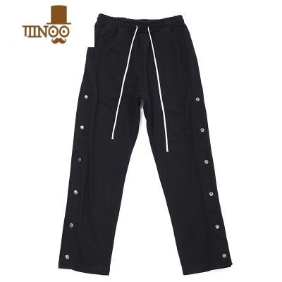 YANXU欧美简约运动侧边纽扣开叉直筒宽松休闲裤潮牌高街风排扣长裤子男