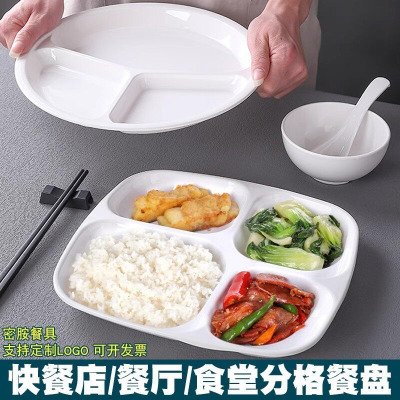 谦星9.5英寸密胺白色圆形四格快餐盘 C8610 1个