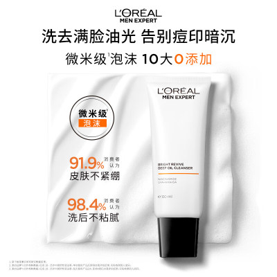 欧莱雅男士美白控油洗面奶130ml变白洁面乳淡痘印祛斑去角质护肤品七夕