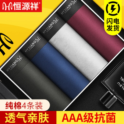 恒源祥新款男士内裤厂家直销AAA抗菌纯棉内裤大码5XL四角平角裤男