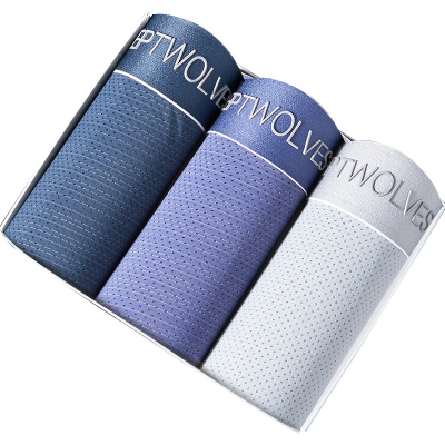七匹狼3条装明筋抗菌平角裤冰丝无痕男士内裤