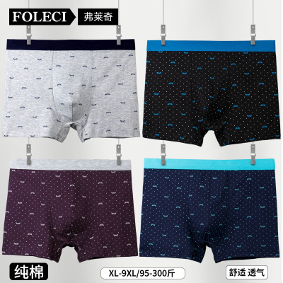 纯棉印花男士内裤中高腰加肥加大码胖子平角裤青年肥佬透气四角裤