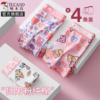粉色男士内裤男生纯棉抗菌四角裤衩猛男粉送男友礼平角短裤头男款