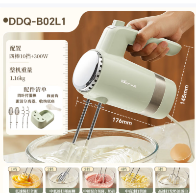 小熊(Bear)打蛋器 家用电动打蛋器 奶油奶盖打发器迷你 烘焙手持搅拌器和面糊 四棒十档 DDQ-B02L1 艾绿色