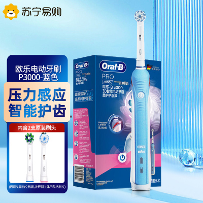 oral-b欧乐b小圆头电动牙刷p3000蓝色情侣成人男女学生党声波3D智能感应式充电式(内含刷头*2)