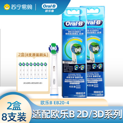 OralB/欧乐B原装适配刷头EB20-4精准清洁型 8支囤货家庭装清洁替换头软毛自动牙刷头适配成人2D/3D系列