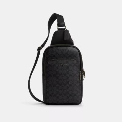 COACH男士耐磨双面设计帆布背包 多口袋可调节肩带