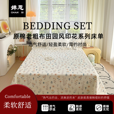 婵思 原棉老粗布田园风印花系列床单