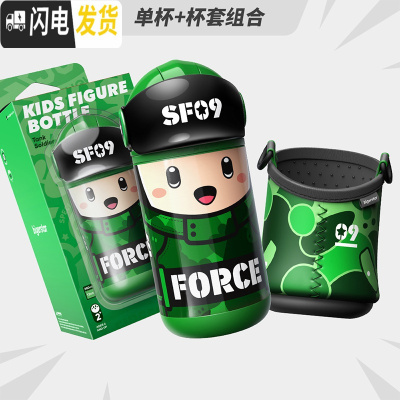 三维工匠biger儿童保温杯带吸管杯套两用男幼儿园小学生316不锈钢防摔水壶 豪杰比儿-坦克兵-绿色[简装无杯套]