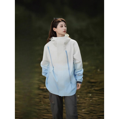 渐变侣冲锋外套男女年春秋季新款户外休闲连帽登山夹克