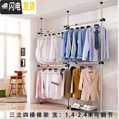 三维工匠顶天立地凉晒架衣架室内落地挂晾衣架阳台升降伸缩杆简易单杆卧室 三立四横 大晾衣架配件