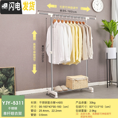三维工匠单杆晾衣架不锈钢落地简易阳台升降晾衣杆室内可伸缩挂衣架 单杆加粗晾衣架YJY-5311 大