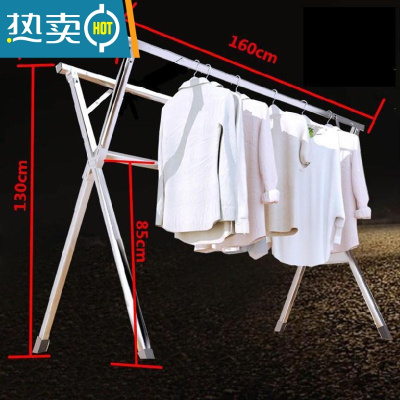 三维工匠晾衣架铝合金折叠落地衣架伸缩晒被X型晒被架室内阳台凉衣架 优雅银色(无孔版) 大晾衣架配件