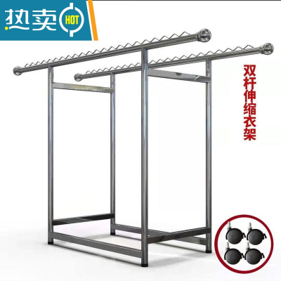敬平[工厂直销]加粗不锈钢晾衣架折叠落地家用伸缩双杆三杆阳台室内 38加粗管伸缩晾衣架二杆+万向轮