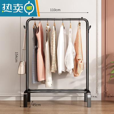 敬平晾衣架落地折叠小型凉挂衣架子简易宿舍室内收纳晒衣服杆落地OPP 基础版-标准双钩-黑色-110CM晾衣杆