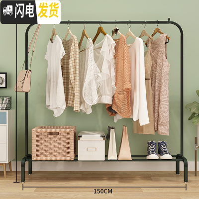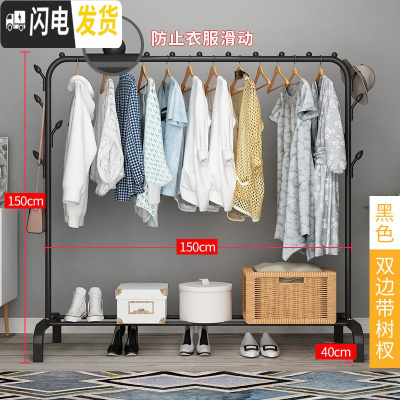 三维工匠单杆式晾衣架落地简易挂衣家用卧室内晒衣架折叠阳台凉衣服 荣耀加长-黑[轮子+衣帽架+多层置物架]150晾衣架配件
