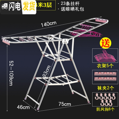 三维工匠落地凉晾衣架婴儿宝宝折叠室内晒衣服被子家用阳台不锈钢室外 A1-旗舰款1.4米+3层 大晾衣架配件