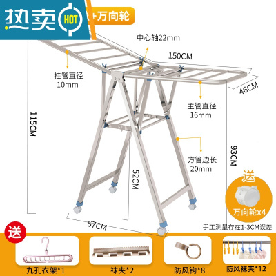 三维工匠晾衣架落地折叠室内铝合金家用翼型婴儿晒衣架阳台凉衣晒被架 858优雅银色加固版带刹车滑轮 大晾衣架配件