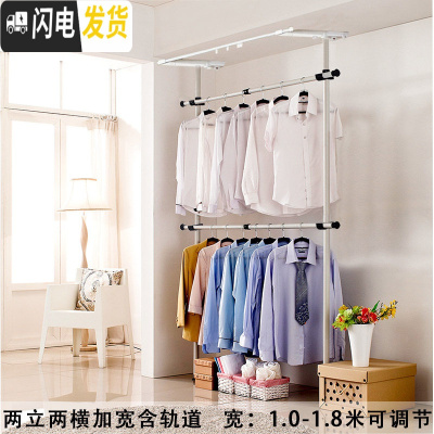 三维工匠顶天立地凉晒架衣架室内落地挂晾衣架阳台升降伸缩杆简易单杆卧室 两立两横加宽含轨道 大晾衣架配件