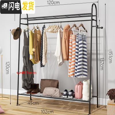 三维工匠晾衣架落地折叠卧室家用式晒衣架室内挂衣架简易单杆凉衣服的架子 1.5米双层置物架-黑 1个晾衣架配件