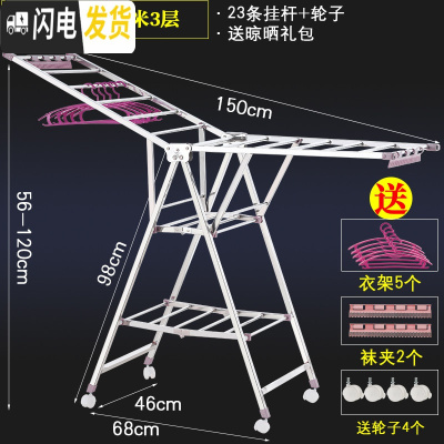 敬平晾衣架不锈钢落地折叠卧室内阳台凉衣架家用婴儿晾衣架晒被 加粗推荐1.5米大二层[20mm方管_ ]??鞋托??轮
