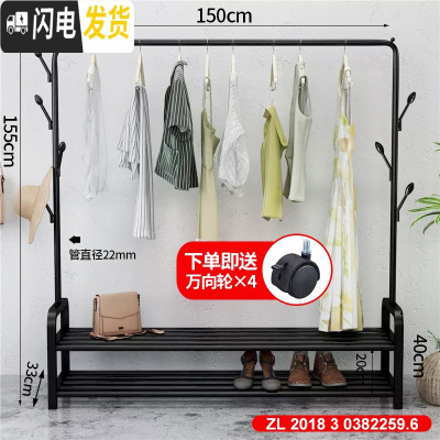三维工匠单杆式晾衣架落地简易挂衣家用卧室内晒衣架折叠阳台凉衣服 尊享加长-黑[轮子+衣帽架+双层置物架]150晾衣架配件