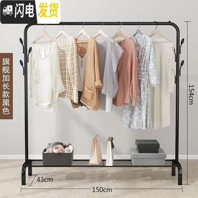 三维工匠晾衣架落地挂衣架折叠宿舍用室内卧室学生晒衣架家用凉衣服杆架子 推荐加长款-黑150[置物架+双侧钩+万晾衣架配件