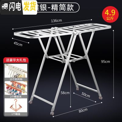 三维工匠晾衣架落地折叠室内阳台晒衣架凉被子家用不锈钢架子式晾衣服 (铝合金)1.36米典雅银-精简款 大晾衣架配件