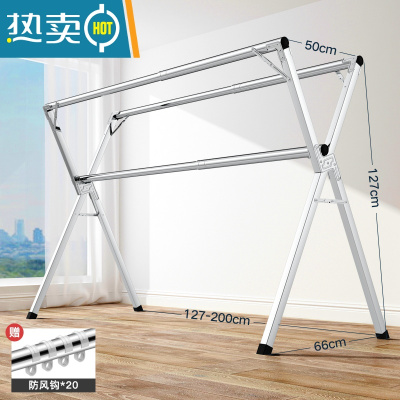 敬平晾衣架落地折叠室内不锈钢家用晾衣杆阳台晒衣架凉被子挂衣服器 不锈钢落地2米加厚款(送20个防风钩) 大