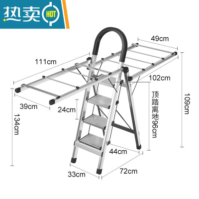 敬平不锈钢晾衣架两用落地折叠家用多功能婴儿凉衣服架阳台晒被子器 [多功能晾衣架4步黑色]加厚不锈钢款-可当折叠梯 大