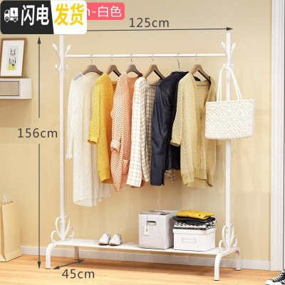 三维工匠单杆式晾衣架落地简易挂衣家用卧室内晒衣架折叠阳台凉衣服的架子 旗舰款-125cm-白色(上+下有置物板晾衣架配件