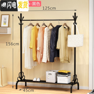 三维工匠单杆式晾衣架落地简易挂衣家用卧室内晒衣架折叠阳台凉衣服的架子 升级款-125cm-黑色(下面有置物板)晾衣架配件