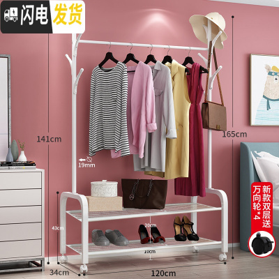 三维工匠简易挂衣架落地卧室阳台晾衣架折叠置衣帽架凉衣服杆家用晒衣架子 120cm-白-双层款[轮子+小树杈] 晾衣架配件
