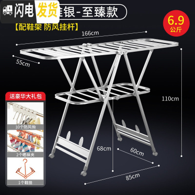 三维工匠晾衣架落地折叠室内阳台晒衣架凉被子家用不锈钢架子式晾衣服 (铝合金)1.66米典雅银-至臻款 大晾衣架配件